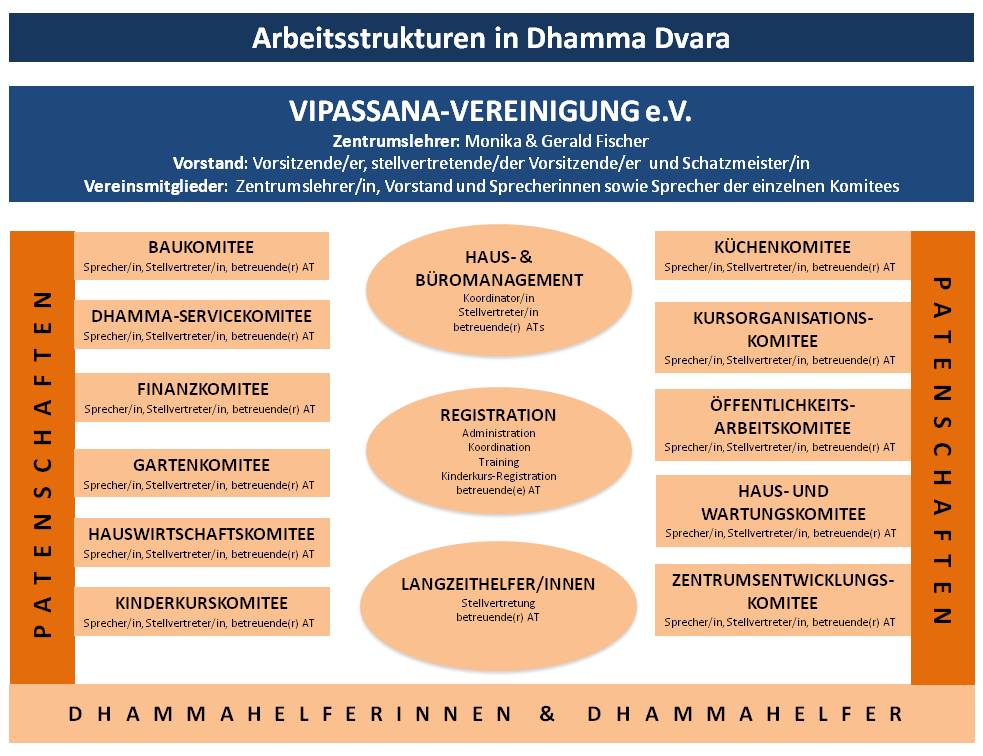 Der Verein finanziert seine Arbeit ausschließlich aus Spenden. Es werden keine Gebühren für die Kursteilnahme erhoben, auch nicht zur Deckung der Kosten für Verpflegung oder Unterbringung. Alle Ausgaben werden von Spenden derer bestritten, die selbst einen Kurs absolviert haben, dabei die positiven Auswirkungen der Vipassana-Meditation erfahren konnten und nun anderen gerne das Gleiche ermöglichen möchten.