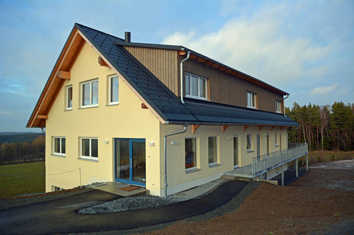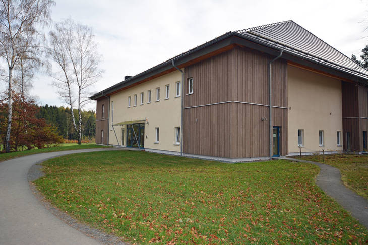 Accommodation building with eight single rooms for long-term servers (house H), completed at the end of 2019. Each room contains a kitchenette. The building also offers space for offices, warehouses and workshops. Only regional companies from Oelsnitz and Plauen were commissioned with the construction, some of whom have been working well together for years.